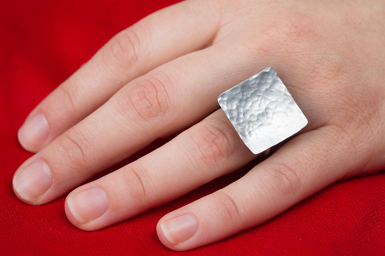 Χειροποίητο Ασημένιο Σφυρήλατο Τετράγωνο Δαχτυλίδι